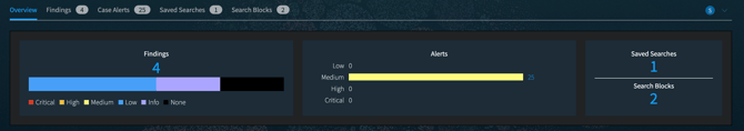 Findings are displayed in the Case Overview, and can be accessed through the Case navigation menu, or by clicking the number in the box on the overview page.